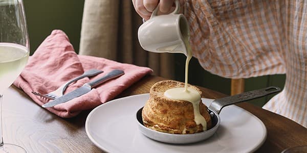 Our twice-baked cheese soufflé is an iconic dish here at The Britannia – light, airy, and so utterly delicious.