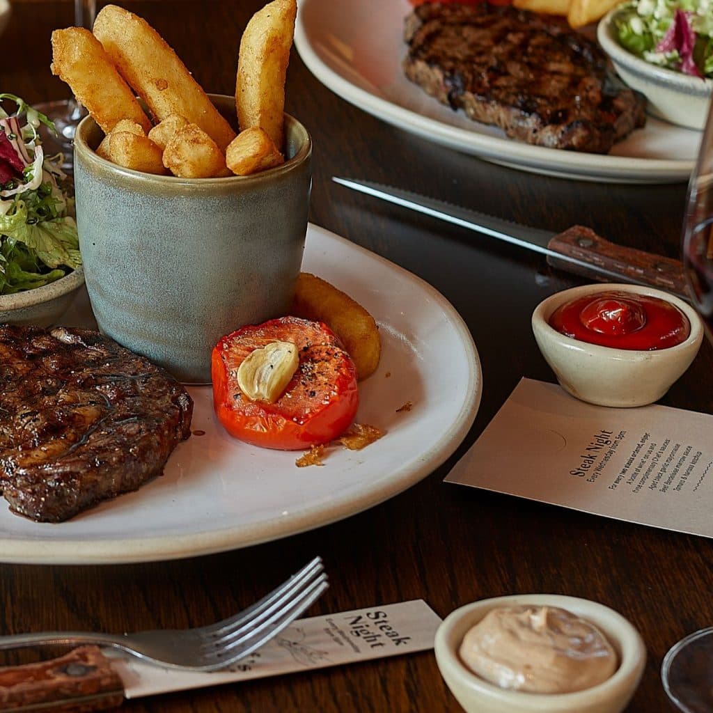 Available every Wednesday at The Britannia, our Steak Night is the perfect midweek treat, offering a complimentary bottle of wine when you order any two of our mouth-watering steaks.